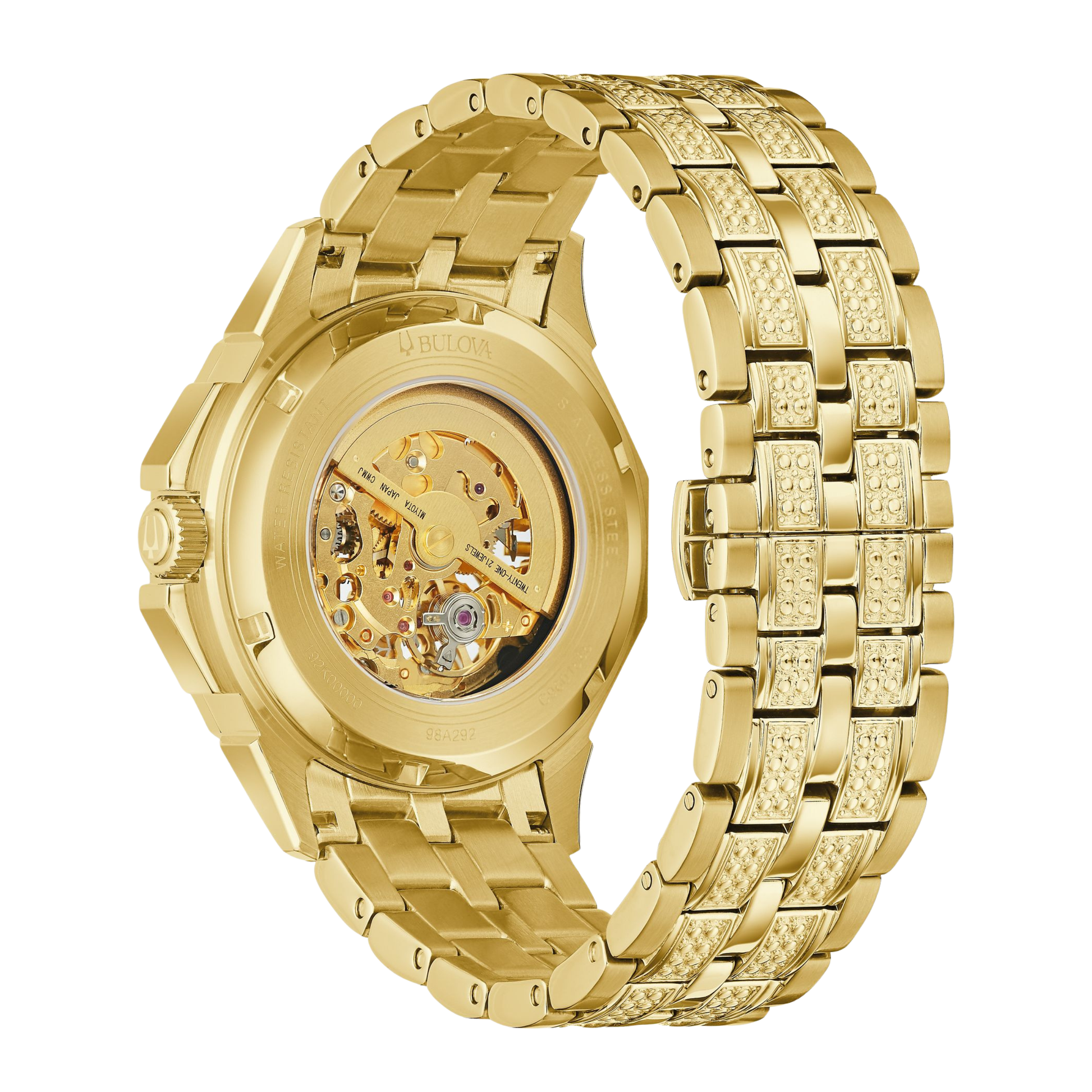 The Bulova 98A292 Octava Crystal Watch is crafted for men who want refined style with everyday practicality in a single, confident design. It wears comfortably thanks to a 41.7 mm case that balances durability with elegant proportions. The gold-tone dial features crisp markers and well‑proportioned hands for clear legibility in all light. Completing the look is a stainless‑steel bracelet, selected for comfort and reliable, long‑term wear. Precision timekeeping comes from an automatic movement, delivering dependable performance with minimal fuss. For daily confidence, the watch offers 30 m water resistance, suitable for routine splashes and the pace of modern life. Every surface reflects Bulova’s attention to detail—from finishing and ergonomics to the balanced silhouette—so it transitions seamlessly from work to weekend. It’s a versatile companion that blends heritage and modernity, pairing substance with style for years of effortless wear. Thoughtful proportions and proven components make it easy to wear daily, while the design language stays timeless and restrained. Whether this anchors a collection or becomes a first serious watch, it brings balanced performance and a quietly confident aesthetic.