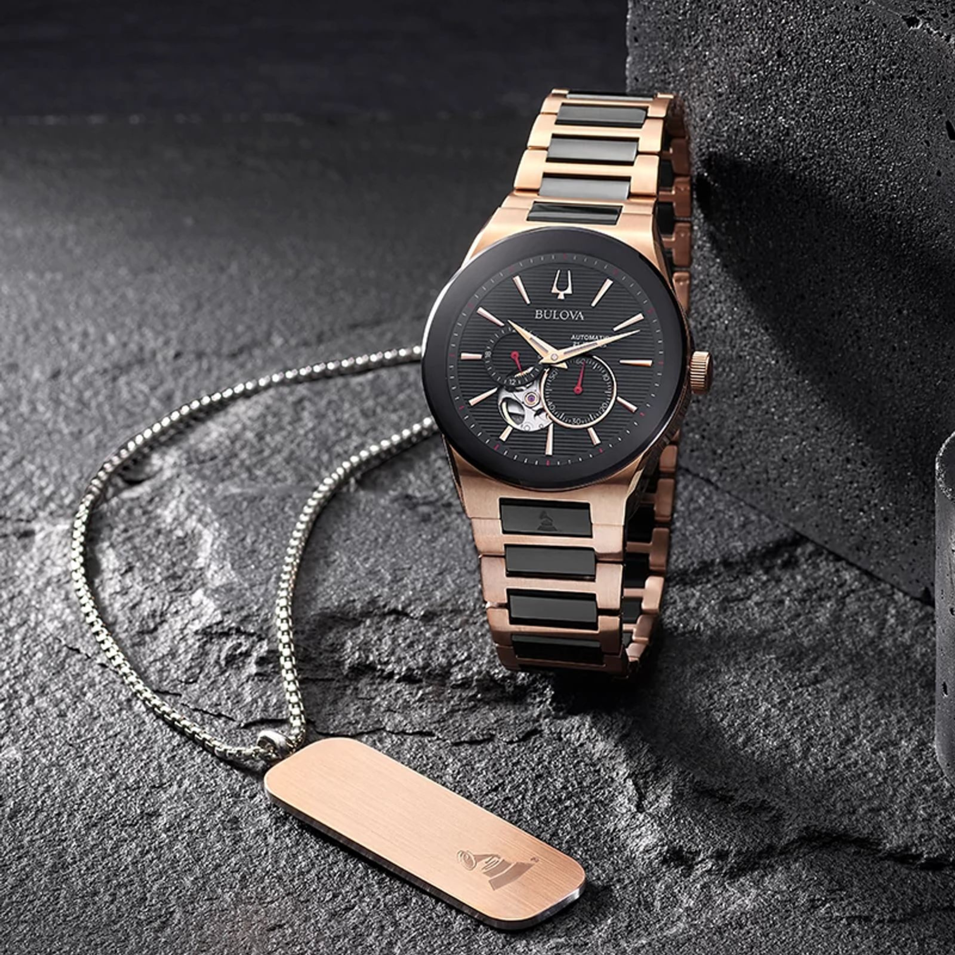 The Bulova 98A236 Millenia Latin Grammy Watch is crafted for men who want refined style with everyday practicality in a single, confident design. It wears comfortably thanks to a 41 mm case that balances durability with elegant proportions. The black dial features crisp markers and well‑proportioned hands for clear legibility in all light. Completing the look is a stainless-steel bracelet, selected for its comfort and reliability, ensuring long-term wear. Precision timekeeping comes from an automatic movement, delivering dependable performance with minimal fuss. For daily confidence, the watch offers 30 m water resistance, suitable for routine splashes and the pace of modern life. Every surface reflects Bulova’s attention to detail—from finishing and ergonomics to the balanced silhouette—so it transitions seamlessly from work to weekend. It’s a versatile companion that blends heritage and modernity, pairing substance with style for years of effortless wear. Thoughtful proportions and proven components make it easy to wear daily, while the design language stays timeless and restrained. Whether this anchors a collection or marks the beginning of a serious watch, it delivers balanced performance and a quietly confident aesthetic.