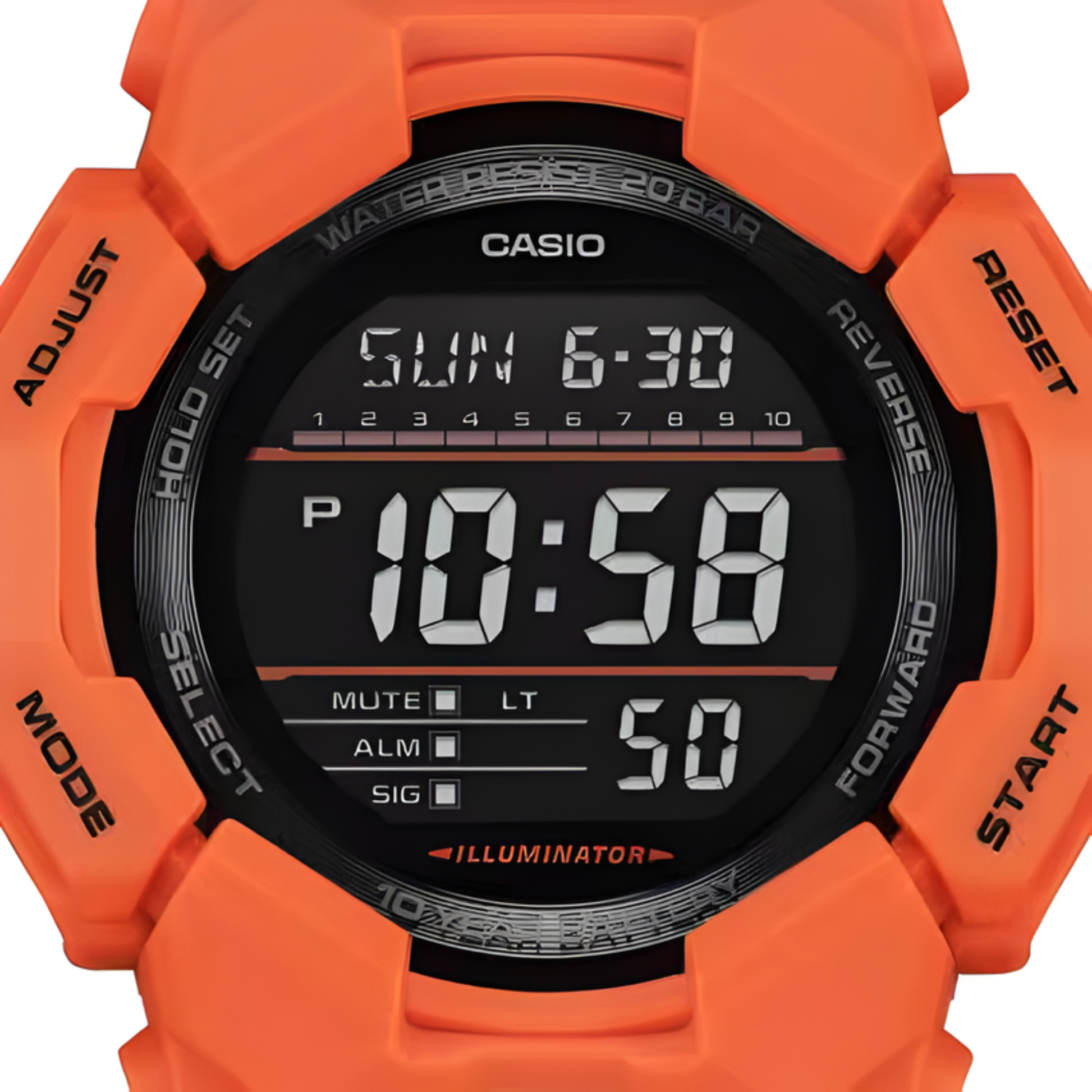 The G-SHOCK GD010-4 stands out in rescue red, featuring a large, easy-to-read display designed for maximum visibility. With a 54.9 mm case and a durable resin band, it delivers bold style and lasting comfort. Built for endurance, it offers a 10-year battery life, shock resistance, and 200-metre water resistance, making it a dependable companion for everyday reliability and adventure.