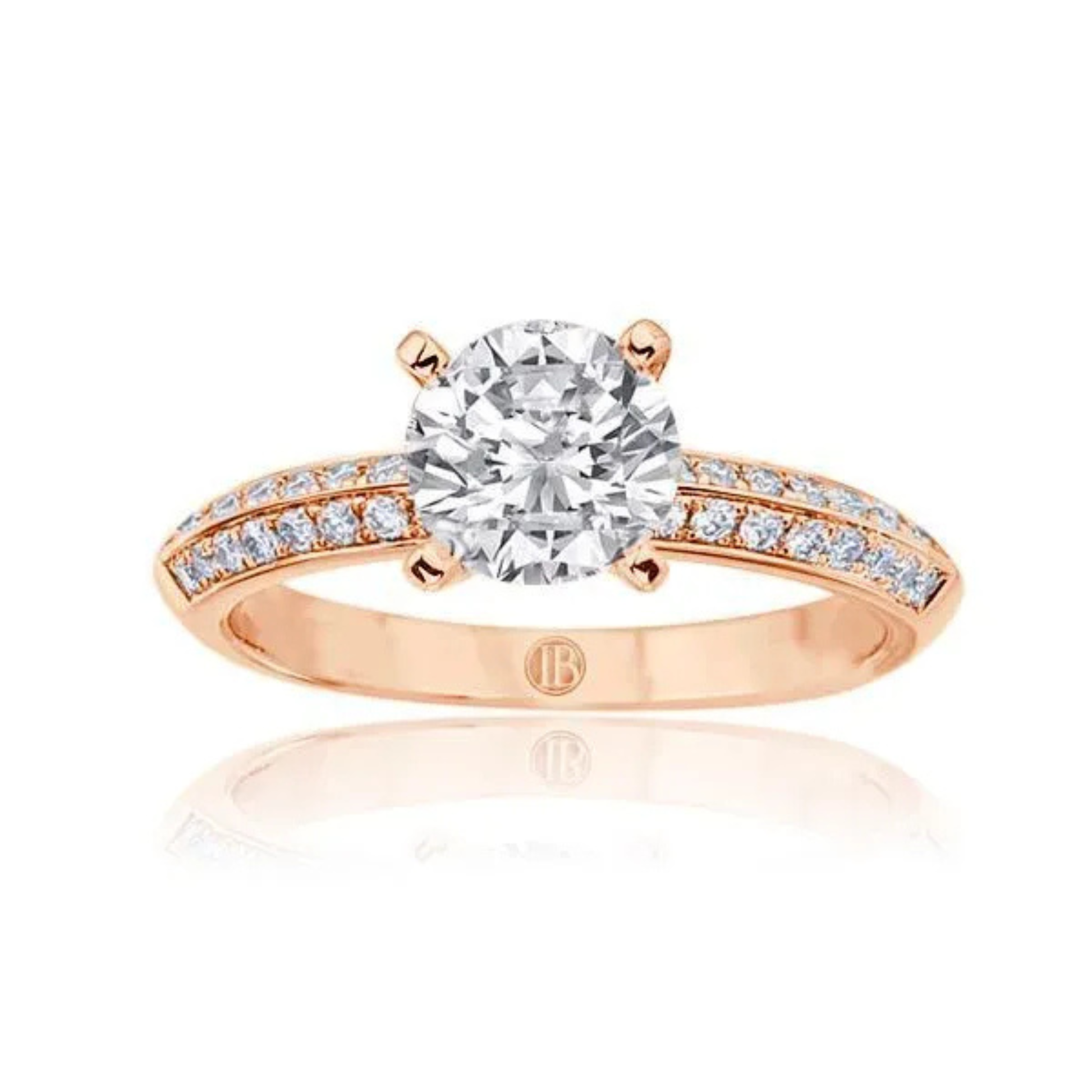 This pave setting in 14K rose gold showcases 32 round pavé diamonds totaling 1/5 carat, adding radiant sparkle to the band. Designed to beautifully complement a round center diamond, the semi-mount setting enhances brilliance while maintaining a refined and elegant silhouette. Crafted with ethical natural diamonds, this ring reflects Imagine Bridal’s commitment to quality and sustainability. Perfect for brides who want a classic, shimmering engagement ring with a modern, conscious twist. Disclaimer: The center diamond is not included and is sold separately.