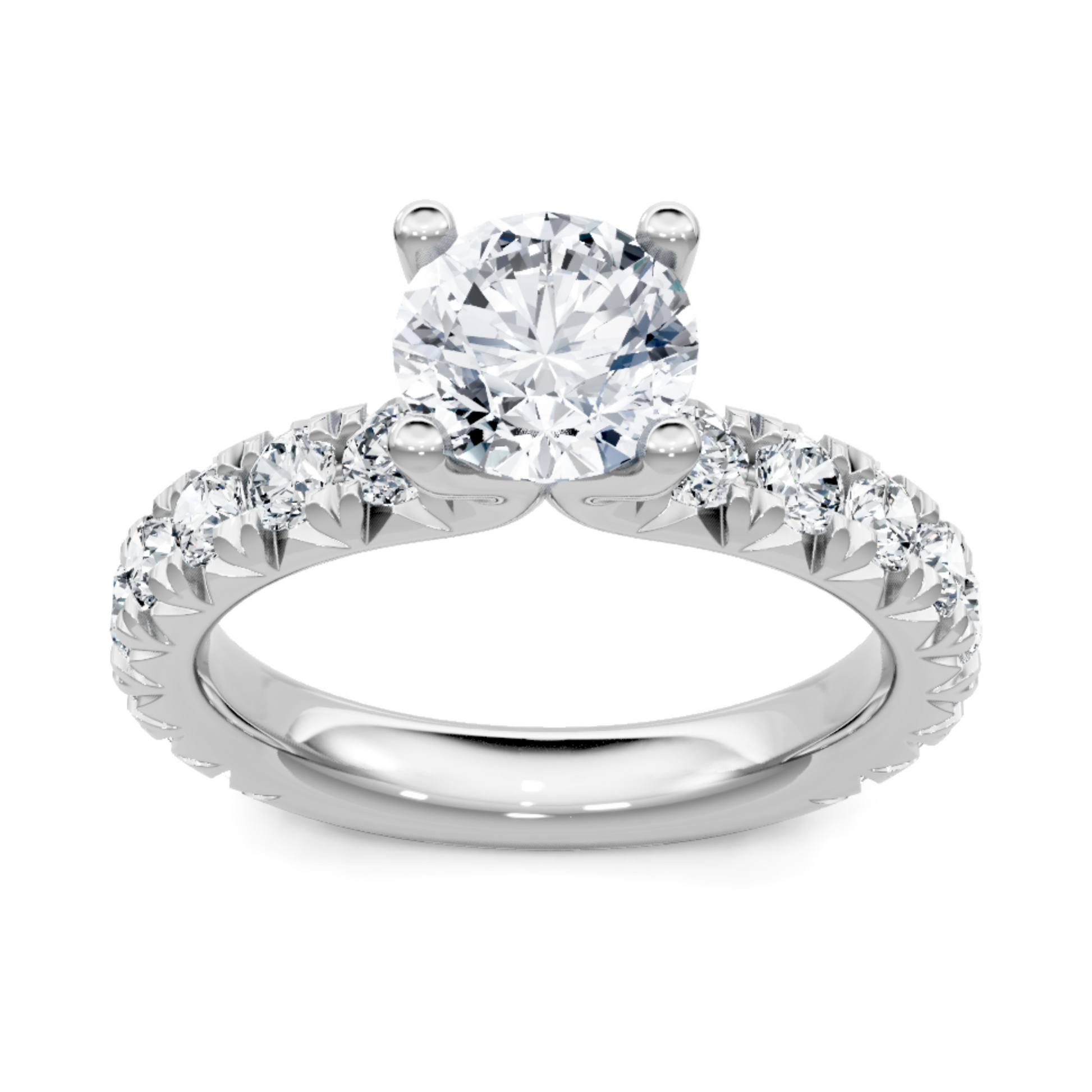 This radiant 14K white gold pave semi-mount setting features 34 round pavé diamonds totaling 1/5 carat along the band, designed to complement and enhance the center diamond’s brilliance. The continuous pavé adds sparkle and elegance while maintaining a refined profile. Crafted with diamonds, this ring embodies Imagine Bridal’s commitment to luxury and expert design. Ideal for brides seeking a classic engagement ring with subtle yet dazzling pavé detailing. Disclaimer: The center diamond is not included and is sold separately.