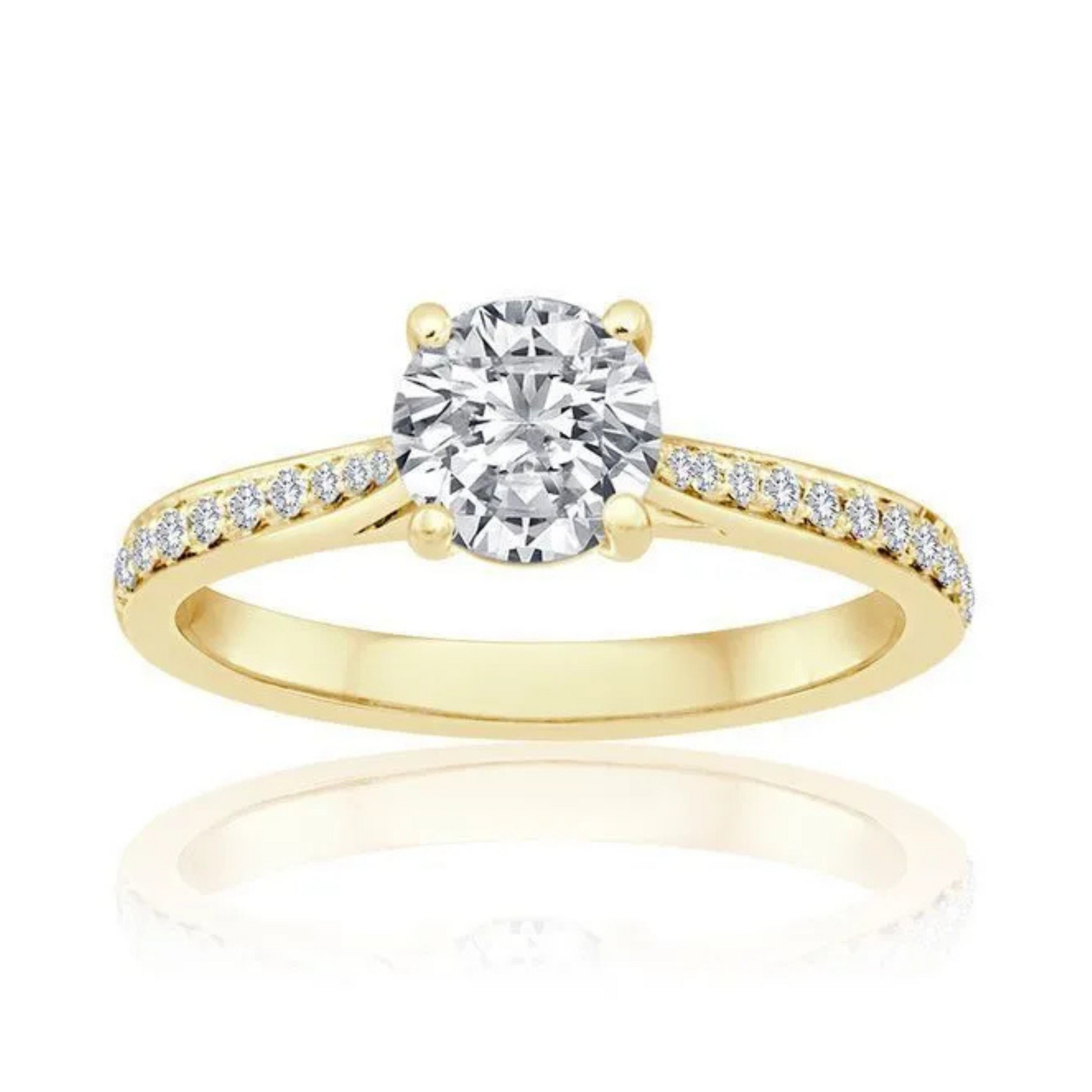 Popular styles currently include delicate pavé halos, hidden halo accents, and vintage-inspired milgrain detailing—offering sparkle and sophistication.