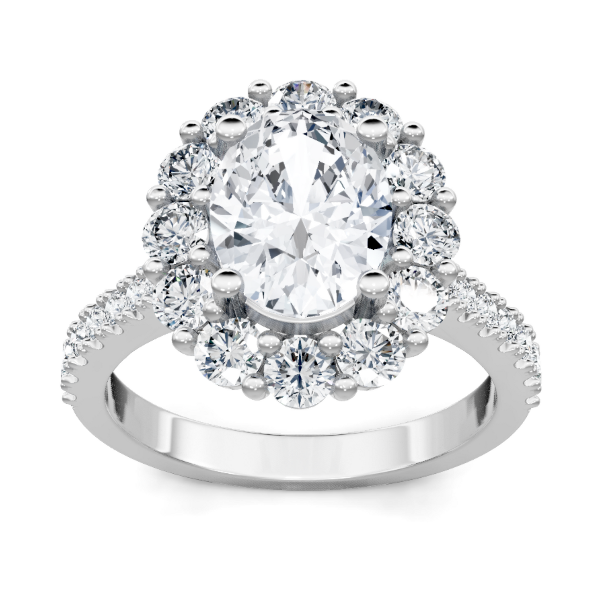 This 14K white gold oval halo semi-mount is adorned with 28 round pavé diamonds totaling 1 carat, beautifully encircling the center diamond with radiant brilliance. The semi-mount enhances the oval center stone’s size and sparkle, creating a timeless and elegant design. Crafted with diamonds, this piece reflects Imagine Bridal’s dedication to ethical sourcing and expert craftsmanship. Perfect for brides seeking a classic semi-mount engagement ring that balances sophistication with contemporary style. Disclaimer: The center diamond is not included and is sold separately.