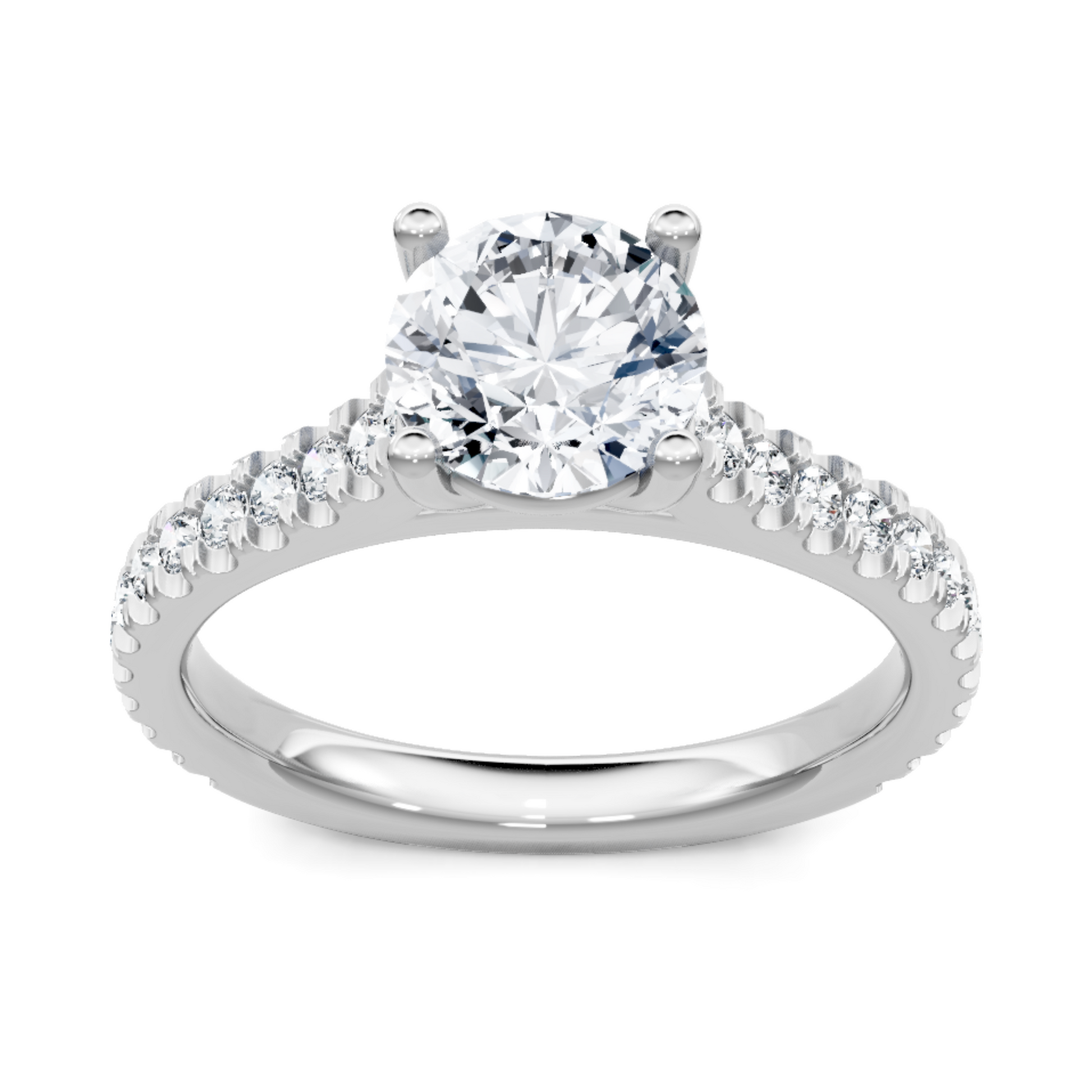This radiant 14K white gold pave semi-mount setting features 18 round pavé diamonds totaling 1 carat, designed to beautifully complement a round center diamond. The continuous pavé adds a shimmering frame that enhances the center stone’s brilliance without overpowering it. Crafted with diamonds, this ring blends timeless elegance with responsible sourcing. Imagine Bridal’s expert craftsmanship creates a classic and sparkling setting perfect for brides seeking sophistication combined with sustainability in their engagement ring. Disclaimer: The center diamond is not included and is sold separately.