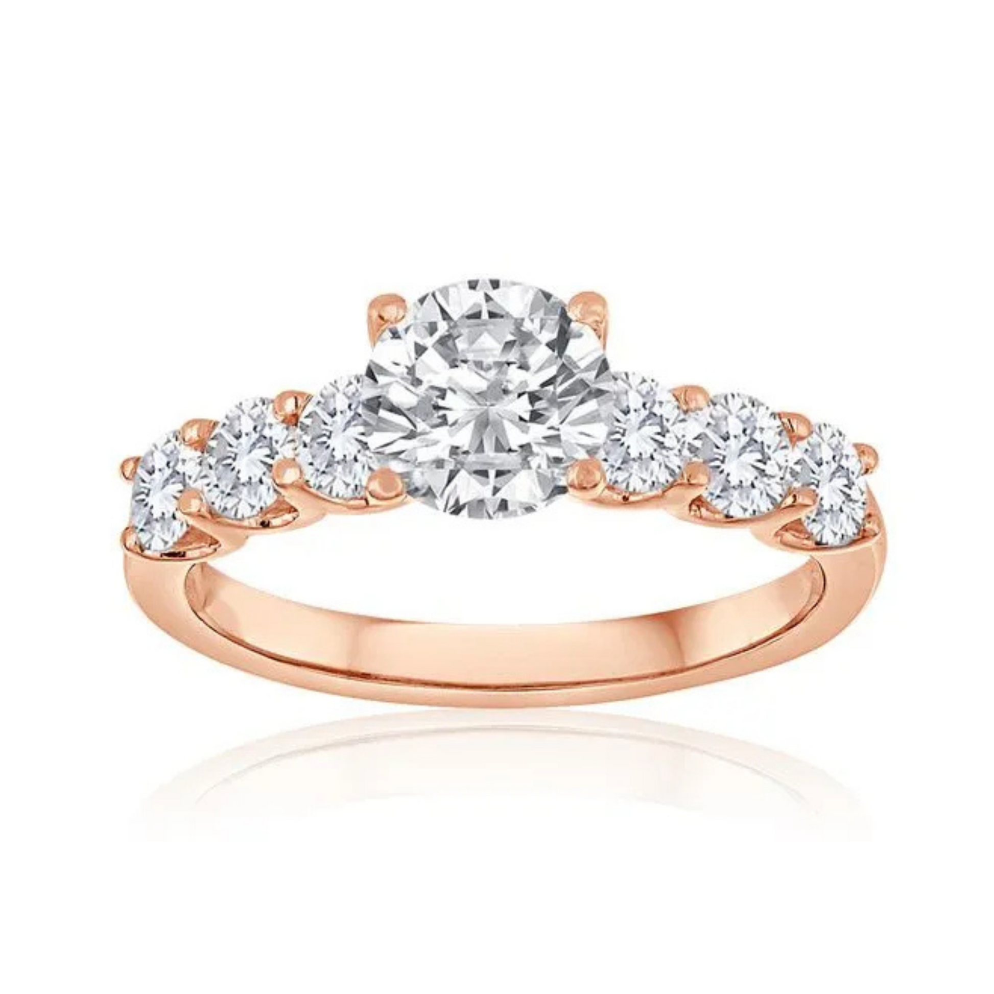 This refined 14K rose gold round diamond semi-mount setting features 6 round pavé diamonds totaling 2/5 carat, delicately set to highlight the center natural diamond. The semi-mount design securely holds the diamonds while adding a subtle yet elegant sparkle to the band. Crafted with ethical natural diamonds, this setting exemplifies Imagine Bridal’s commitment to sustainable luxury and expert craftsmanship. It offers brides a classic and understated foundation for a timeless engagement ring. Disclaimer: The center diamond is not included and is sold separately.