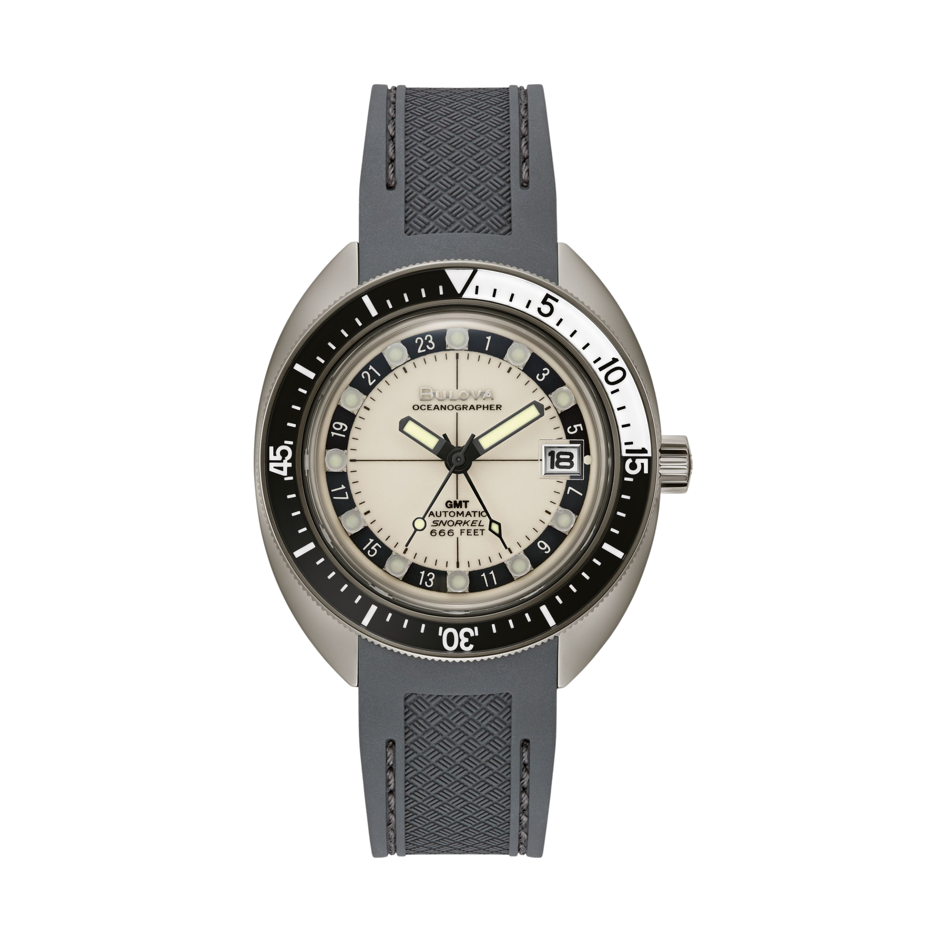 The Bulova 98B407 Oceanographer GMT Watch is crafted for men who want refined style with everyday practicality in a single, confident design. It wears comfortably thanks to a 41 mm case that balances durability with elegant proportions. The white dial features crisp markers and well‑proportioned hands for clear legibility in all light. Completing the look is a silicone strap, selected for comfort and reliable, long‑term wear. Precision timekeeping comes from an automatic movement, delivering dependable performance with minimal fuss. For daily confidence, the watch offers 200 m water resistance, suitable for routine splashes, serious deep diving, and the pace of modern life. Every surface reflects Bulova’s attention to detail—from finishing and ergonomics to the balanced silhouette—so it transitions seamlessly from work to weekend. It’s a versatile companion that blends heritage and modernity, pairing substance with style for years of effortless wear. Thoughtful proportions and proven components make it easy to wear daily, while the design language stays timeless and restrained. Whether this anchors a collection or becomes a first serious watch, it brings balanced performance and a quietly confident aesthetic.