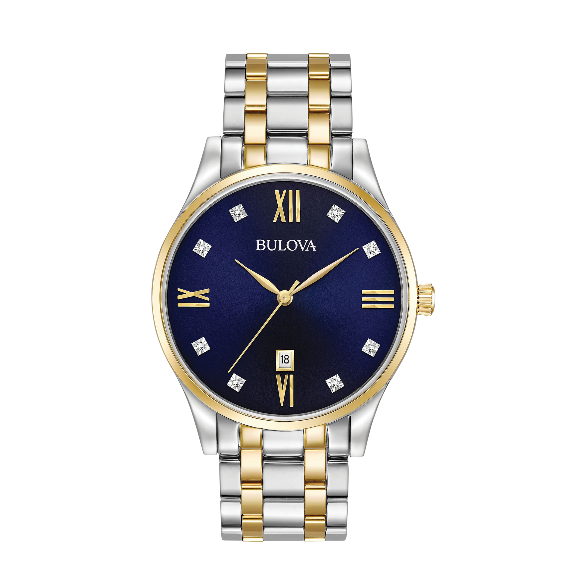 The Bulova 98D130 Classic Diamond Watch is crafted for men who want refined style with everyday practicality in a single, confident design. It wears comfortably thanks to a 40 mm case that balances durability with elegant proportions. The blue dial features crisp markers and well‑proportioned hands for clear legibility in all light. Completing the look is a stainless‑steel bracelet, selected for comfort and reliable, long‑term wear. Precision timekeeping comes from a quartz movement, delivering dependable performance with minimal fuss. For daily confidence, the watch offers 30 m water resistance, suitable for routine splashes and the pace of modern life. Every surface reflects Bulova’s attention to detail—from finishing and ergonomics to the balanced silhouette—so it transitions seamlessly from work to weekend. It’s a versatile companion that blends heritage and modernity, pairing substance with style for years of effortless wear. Thoughtful proportions and proven components make it easy to wear daily, while the design language stays timeless and restrained. Whether this anchors a collection or becomes a first serious watch, it brings balanced performance and a quietly confident aesthetic.