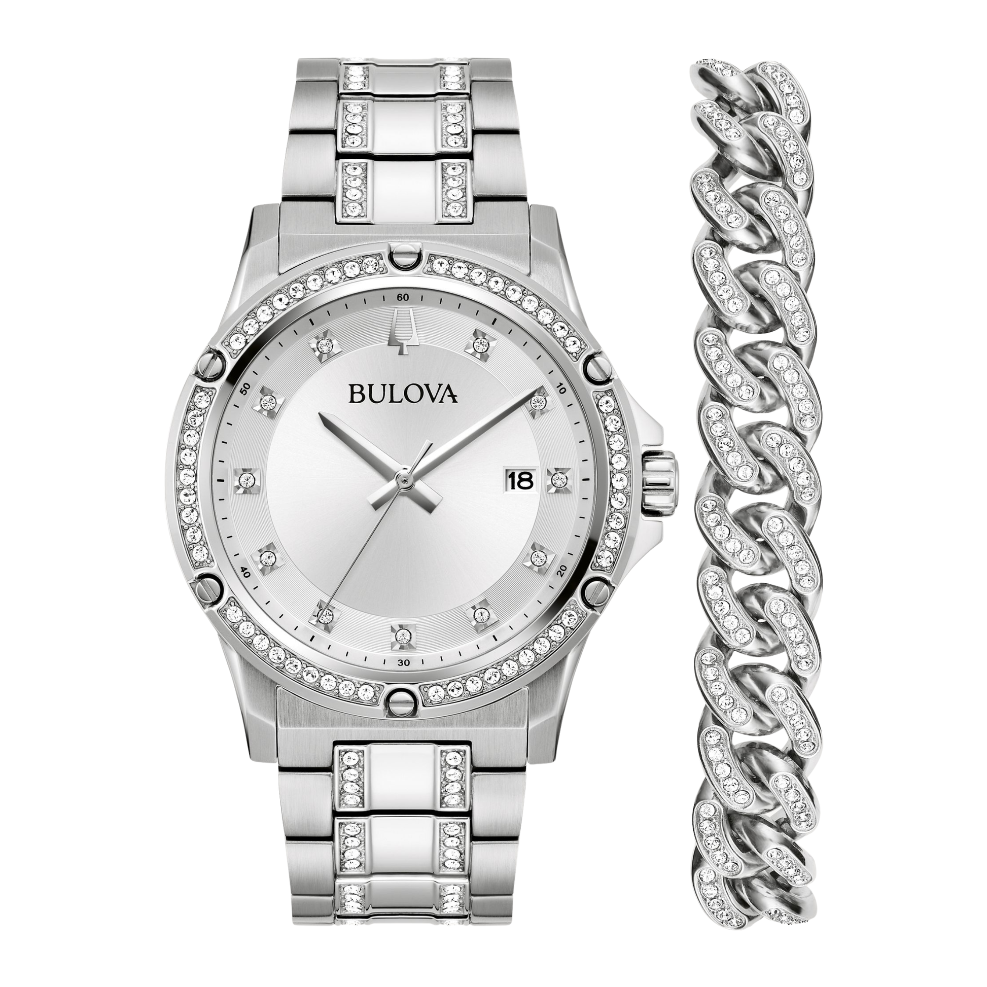 The Bulova 96K114 Crystal Watch is crafted for men who want refined style with everyday practicality in a single, confident design. It wears comfortably thanks to a 42 mm case that balances durability with elegant proportions. The silver-tone dial features crisp markers and well‑proportioned hands for clear legibility in all light. Completing the look is a stainless‑steel bracelet, selected for comfort and reliable, long‑term wear. Precision timekeeping comes from a quartz movement, delivering dependable performance with minimal fuss. For daily confidence, the watch offers 50 m water resistance, suitable for routine splashes, underwater use, and the pace of modern life. Every surface reflects Bulova’s attention to detail—from finishing and ergonomics to the balanced silhouette—so it transitions seamlessly from work to weekend. It’s a versatile companion that blends heritage and modernity, pairing substance with style for years of effortless wear. Thoughtful proportions and proven components make it easy to wear daily, while the design language stays timeless and restrained. Whether this anchors a collection or becomes a first serious watch, it brings balanced performance and a quietly confident aesthetic.