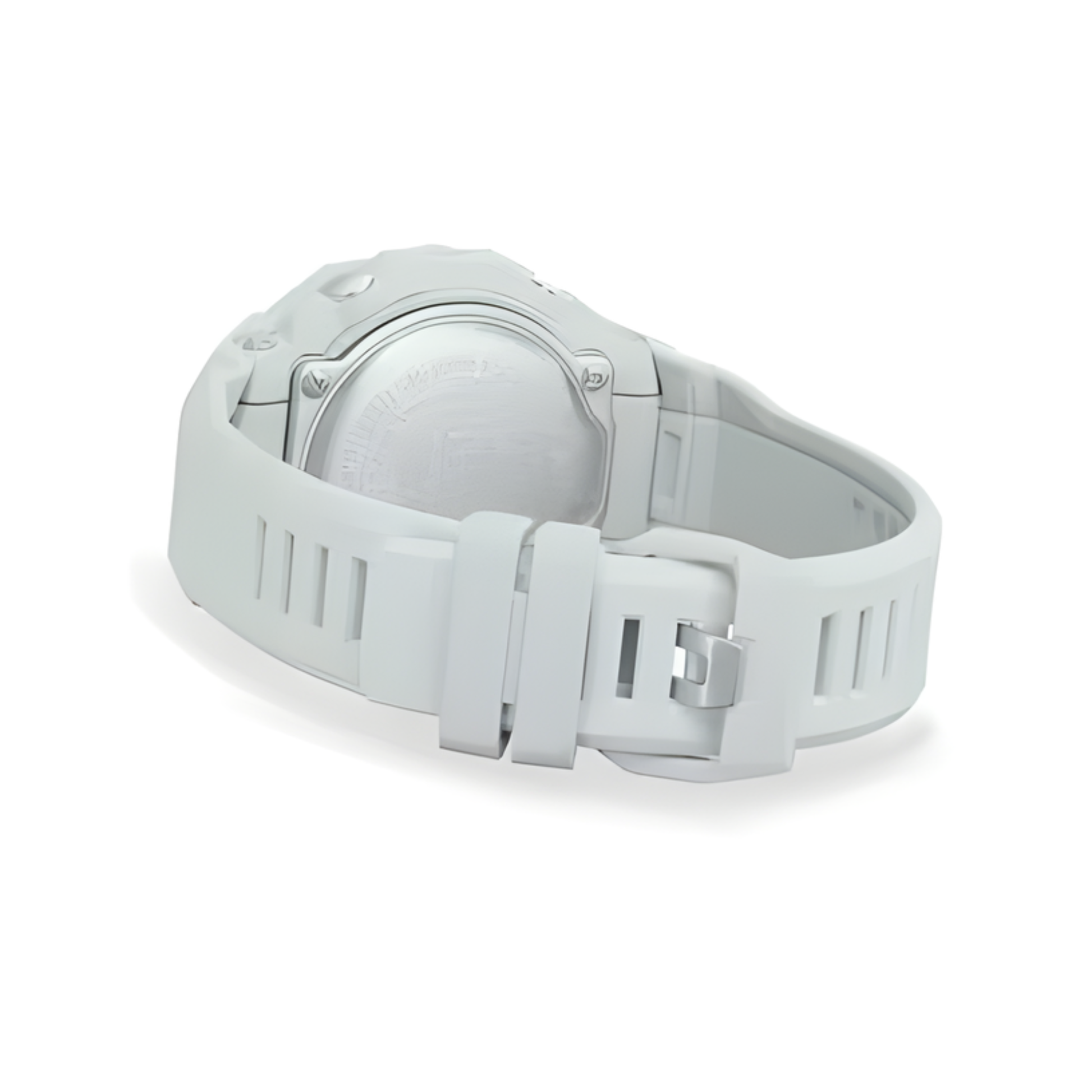 The G-SHOCK GBA950-7A combines training functionality with a clean white design made for active lifestyles. Featuring a 48.5 mm resin case, white dial, and resin band, it delivers both comfort and durability. Equipped with Bluetooth Mobile Link, step tracking, stopwatch, and timer, this watch offers smart training support with 200-metre water resistance for workouts and everyday wear.