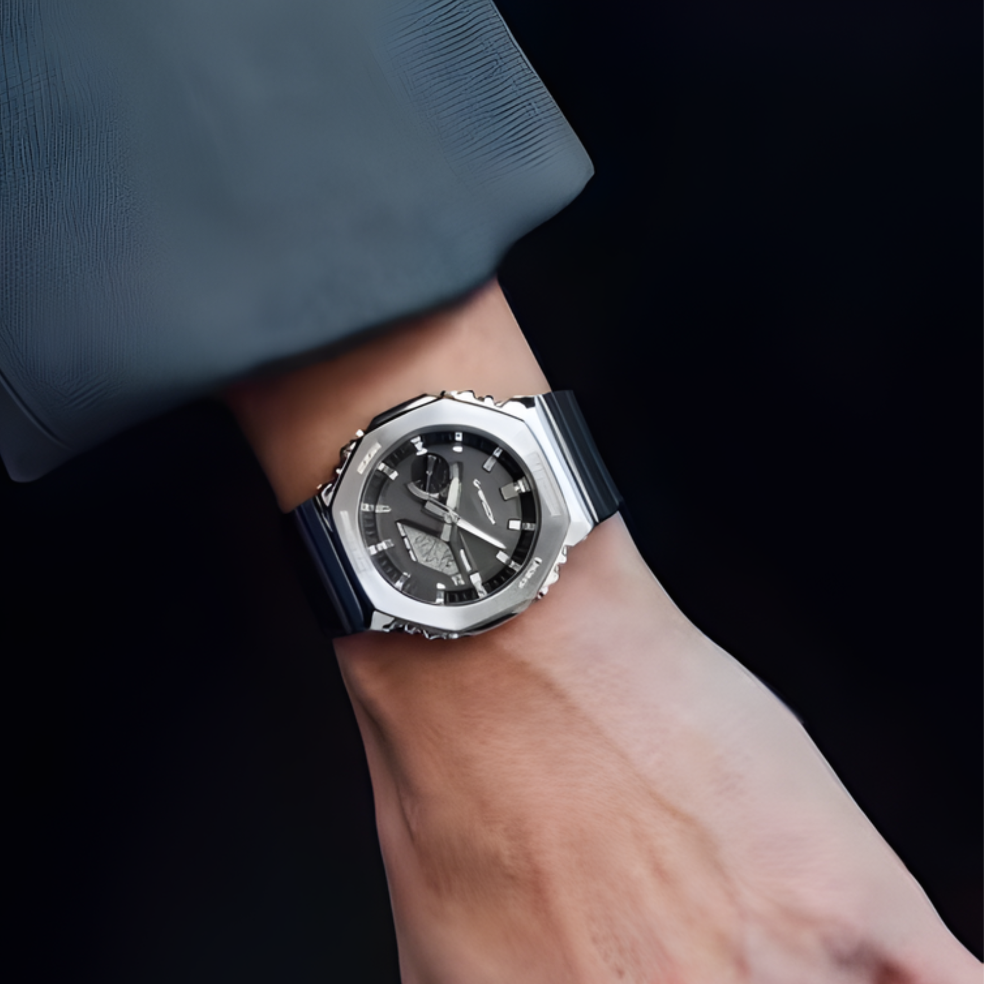 The G-SHOCK GBM2100-1A from the G-STEEL 2100 collection is built for men who want toughness with refined style. It features a 49.3 × 44.4 × 11.9 mm case crafted from Bio-based resin / Stainless steel, matched to a Stainless steel and Bio-based resin band. The dial/display is Black, delivering crisp legibility in all conditions. Timekeeping is handled by a Tough Solar, Bluetooth system for dependable accuracy and everyday convenience. Water resistance is rated to 200 m, so it’s ready for swimming and harsh weather. Key features: Slim octagonal profile; World time; Stopwatch; Timer; 5 alarms; Double LED light. As with every G‑SHOCK, you also get the signature shock‑resistant construction and rugged reliability for years of worry‑free wear. G‑SHOCK engineering blends resilient materials with thoughtful ergonomics, from the protective bezel architecture to the comfortable strap. Sapphire or mineral crystals, high‑brightness illumination and intuitive controls make these watches easy to live with day to day. Whether you’re training, traveling or tackling the workweek, this model balances performance, practicality and distinctive design so it feels as capable as it looks. Identified by SKU no. GBM2100-1A.