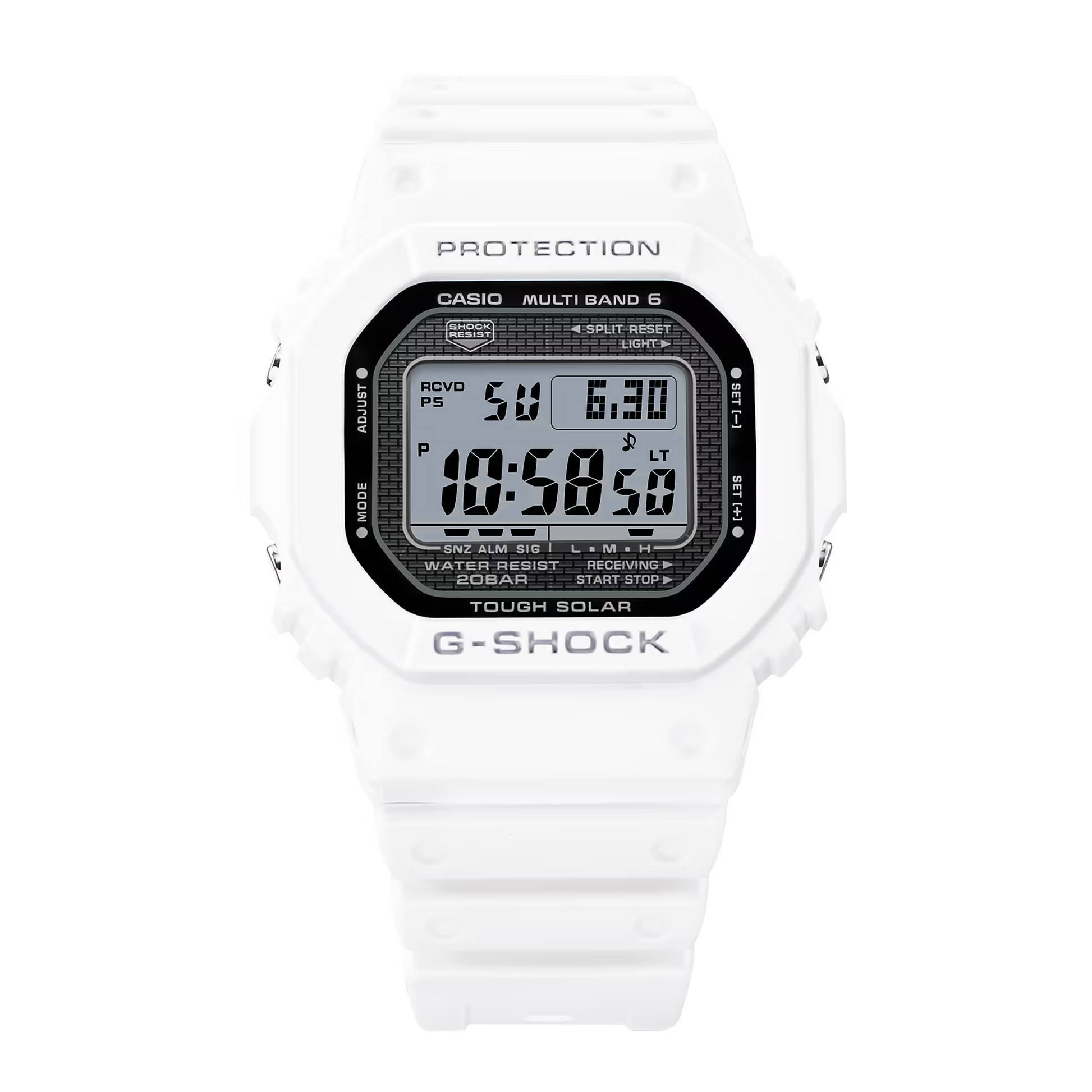 The G-SHOCK GW5000HS-7 from the Origin 5000 collection is built for men who want toughness with refined style. It features a 48.9 × 42.8 × 13.5 mm case crafted from Stainless steel / Bio-based resin (screw-back), matched to a Resin and Bio-based resin (white) band. The dial/display is Black LCD, delivering crisp legibility in all conditions. Timekeeping is handled by a Tough Solar, Multiband 6 system for dependable accuracy and everyday convenience. Water resistance is rated to 200 m, so it’s ready for swimming and harsh weather. Key features: Screw-back DLC case; World time; 1/100-sec stopwatch; Countdown timer; 5 alarms; Super Illuminator. As with every G‑SHOCK, you also get the signature shock‑resistant construction and rugged reliability for years of worry‑free wear. G‑SHOCK engineering blends resilient materials with thoughtful ergonomics, from the protective bezel architecture to the comfortable strap. Sapphire or mineral crystals, high‑brightness illumination and intuitive controls make these watches easy to live with day to day. Whether you’re training, traveling or tackling the workweek, this model balances performance, practicality and distinctive design so it feels as capable as it looks.