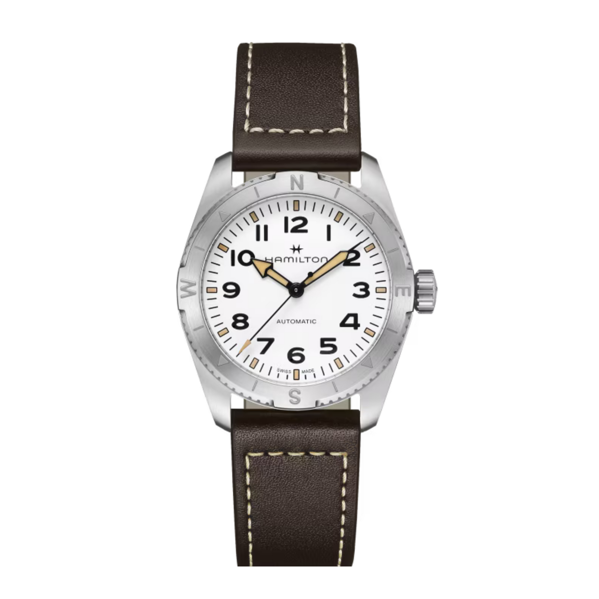 The Hamilton Khaki Field Expedition Auto 37mm with a white dial is built for those who embrace adventure with precision and style. Its clean white dial, enhanced with luminous hands and markers, ensures effortless readability in all conditions, while the automatic movement delivers dependable accuracy for everyday wear or rugged outdoor exploration. The stainless steel case adds durability, making it a reliable companion on every journey. Part of the Compass Edition, this watch celebrates Hamilton’s heritage of military-inspired timepieces and the spirit of exploration. Designed for those navigating both urban landscapes and wilderness trails, the Khaki Field Expedition Auto 37mm combines rugged functionality with timeless design, offering a dependable and stylish watch for every adventure. Identified by SKU H70225510
