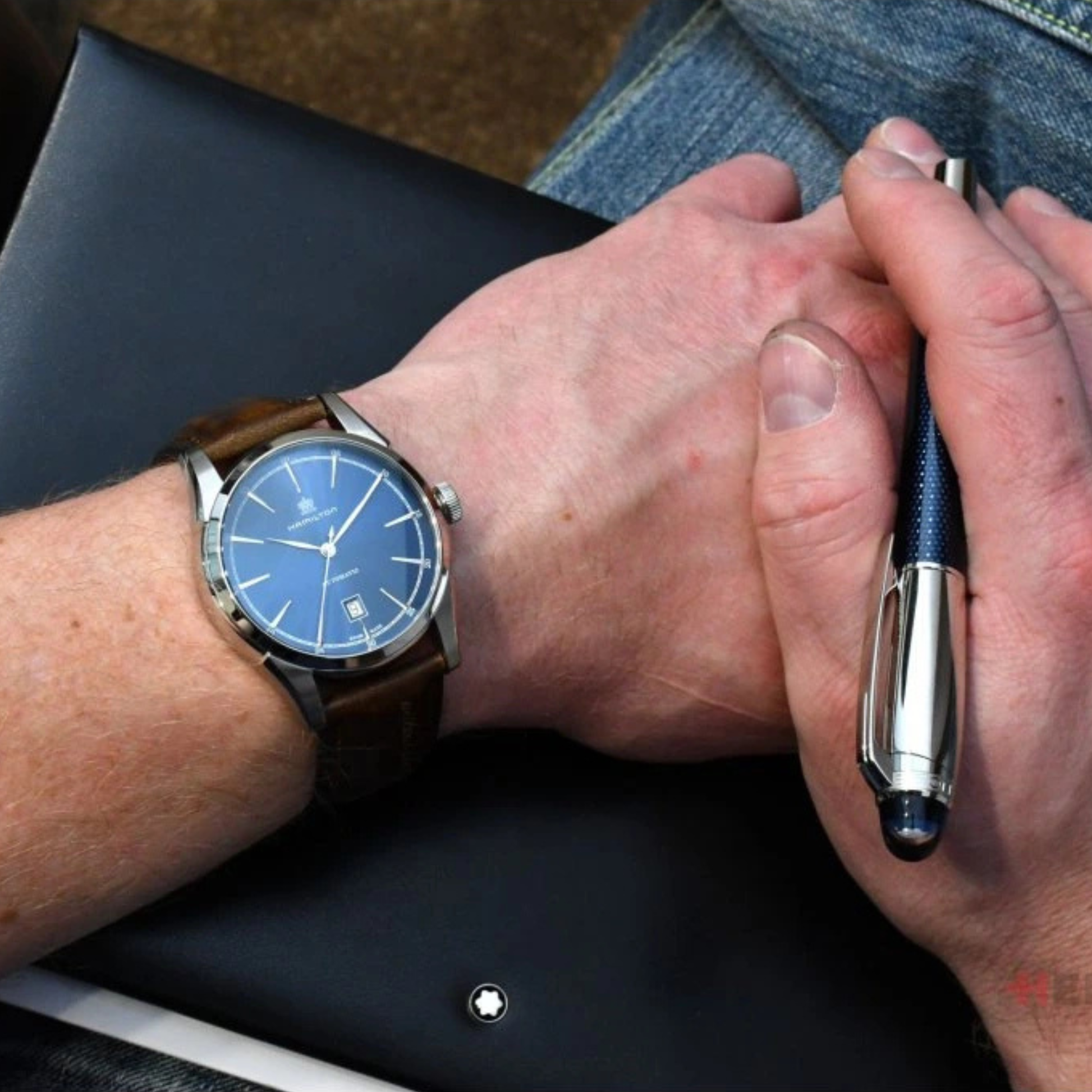 The Hamilton American Classic Spirit of Liberty Auto 42 mm is more than just a dress watch—it’s a statement of heritage and freedom. Its striking blue dial radiates elegance, complemented by polished stainless steel that gives it a timeless and versatile presence. Sized at 42 mm, it balances boldness with sophistication, perfect for those who value tradition while embracing modern design. Every glance at the dial evokes a sense of purpose, whether worn in formal settings or during everyday moments. Beneath its refined surface lies Hamilton’s reliable automatic movement with an impressive 80-hour power reserve, a true symbol of endurance and independence. This watch doesn’t just measure time—it celebrates it. With its patriotic spirit and enduring craftsmanship, it serves as both a companion for today and a keepsake for tomorrow. Identified by SKU no. H42415541.