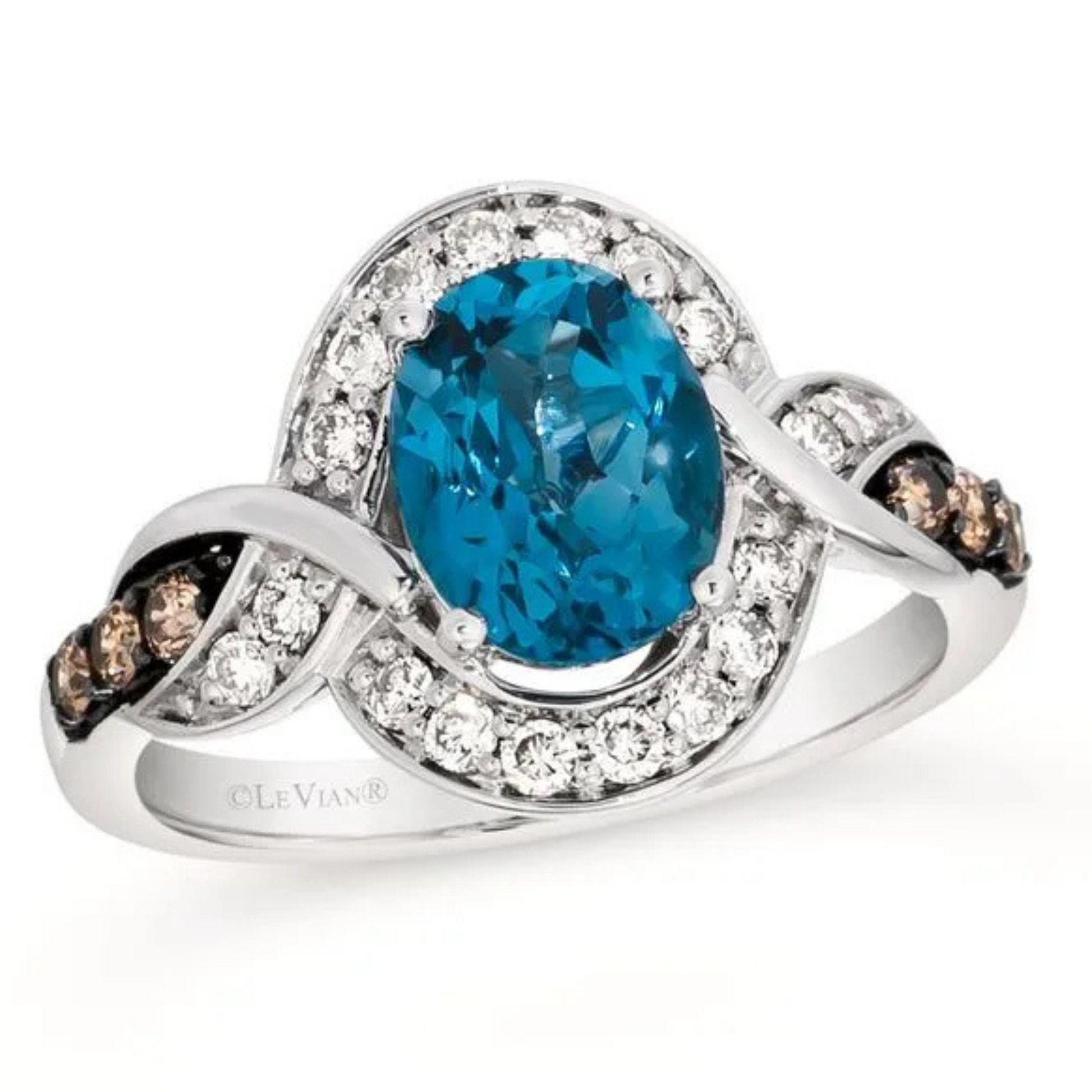 Le Vian 14K Vanilla Gold Deep Sea Blue Topaz, Chocolate and Nude Diamond Ring 1.875ct