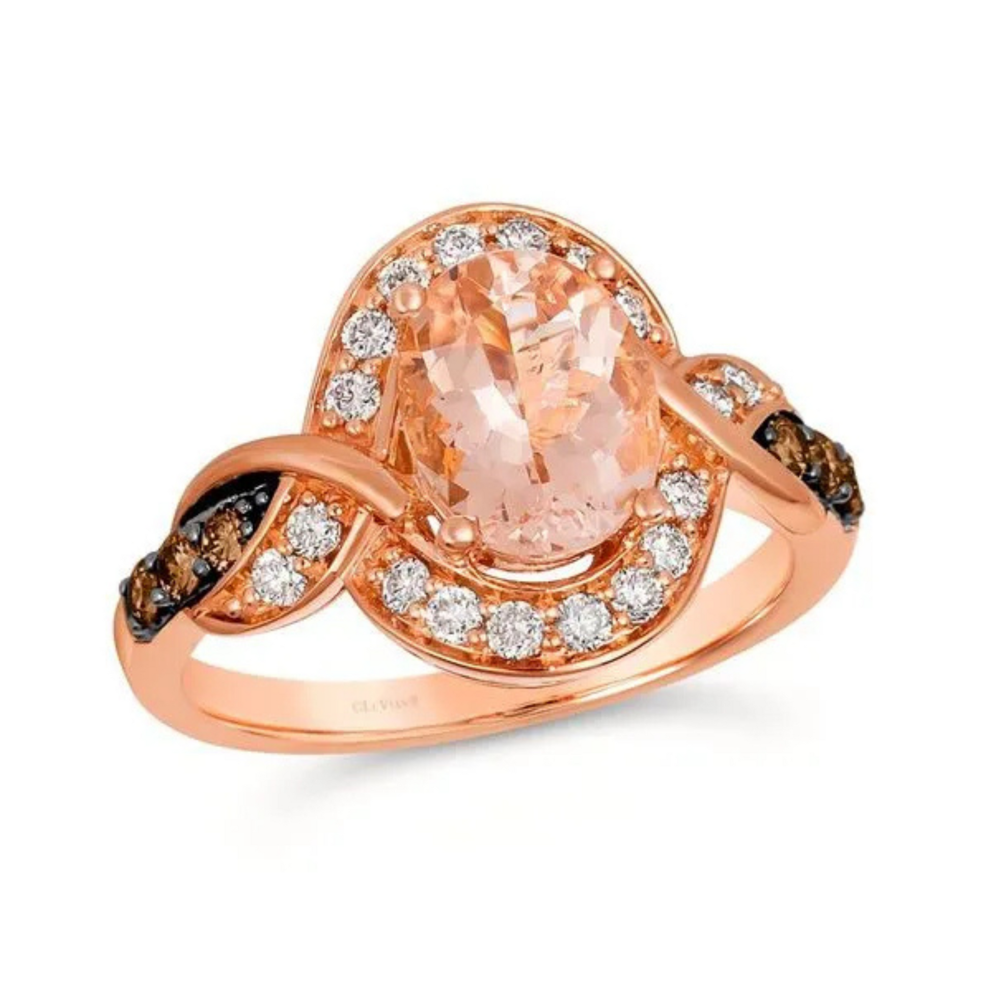 Le Vian 14K Strawberry Gold Peach Morganite, Chocolate and Nude Diamond Ring 1.333ct