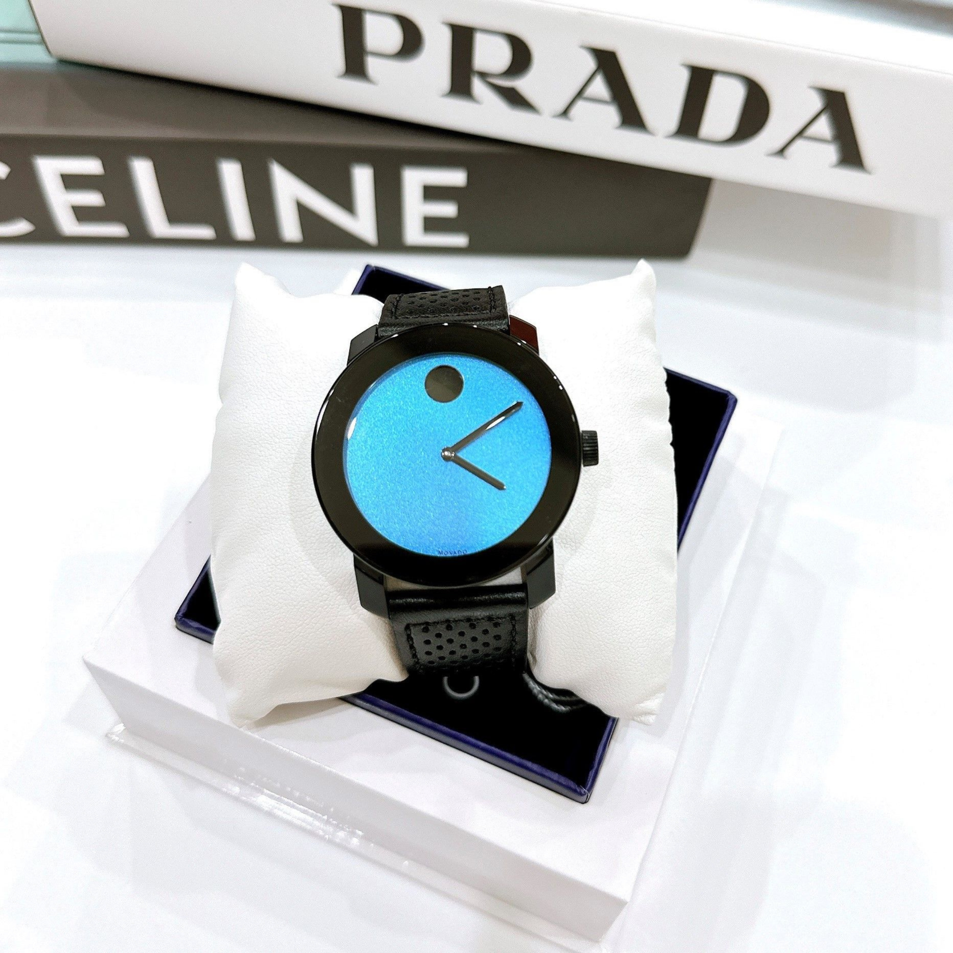 Movado Bold Round Blue Dial Black Leather Watch 42 mm