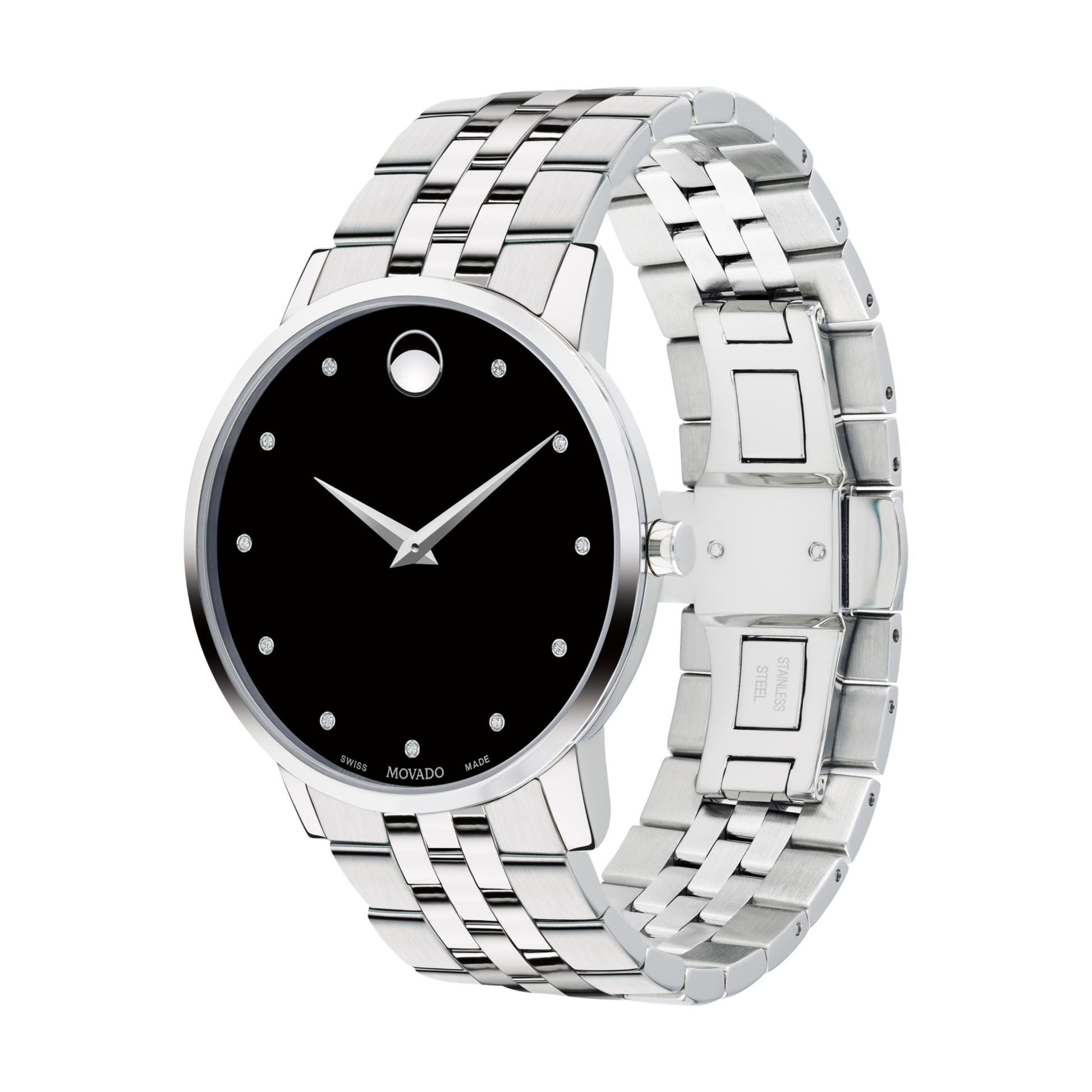 Movado Museum Classic Diamond Stainless Steel Black Dial Watch 40 mm