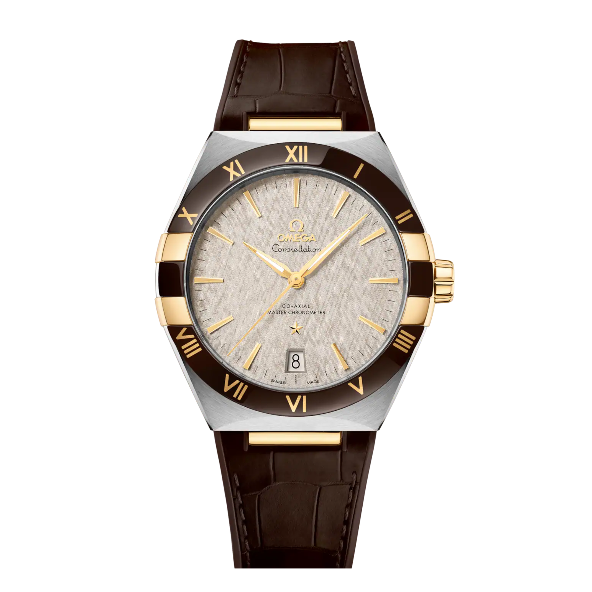 The Omega Constellation 41 mm is where heritage design meets modern innovation, crafted with the refined balance of stainless steel and 18K yellow gold. Its rhodium-grey dial radiates understated sophistication, framed by a polished brown ceramic bezel enhanced with Omega’s exclusive Ceragold™ detailing. The iconic Constellation claws and half-moon facets pay homage to a design legacy that has defined luxury watchmaking for decades, making this timepiece instantly recognizable. At its heart beats Omega’s Master Chronometer movement, certified at the highest level for precision, magnetic resistance, and reliability. Designed for those who value both elegance and performance, this Constellation is a bold statement on the wrist—versatile enough for everyday wear yet distinguished enough for life’s most important occasions. Identified by SKU: 131.23.41.21.06.002