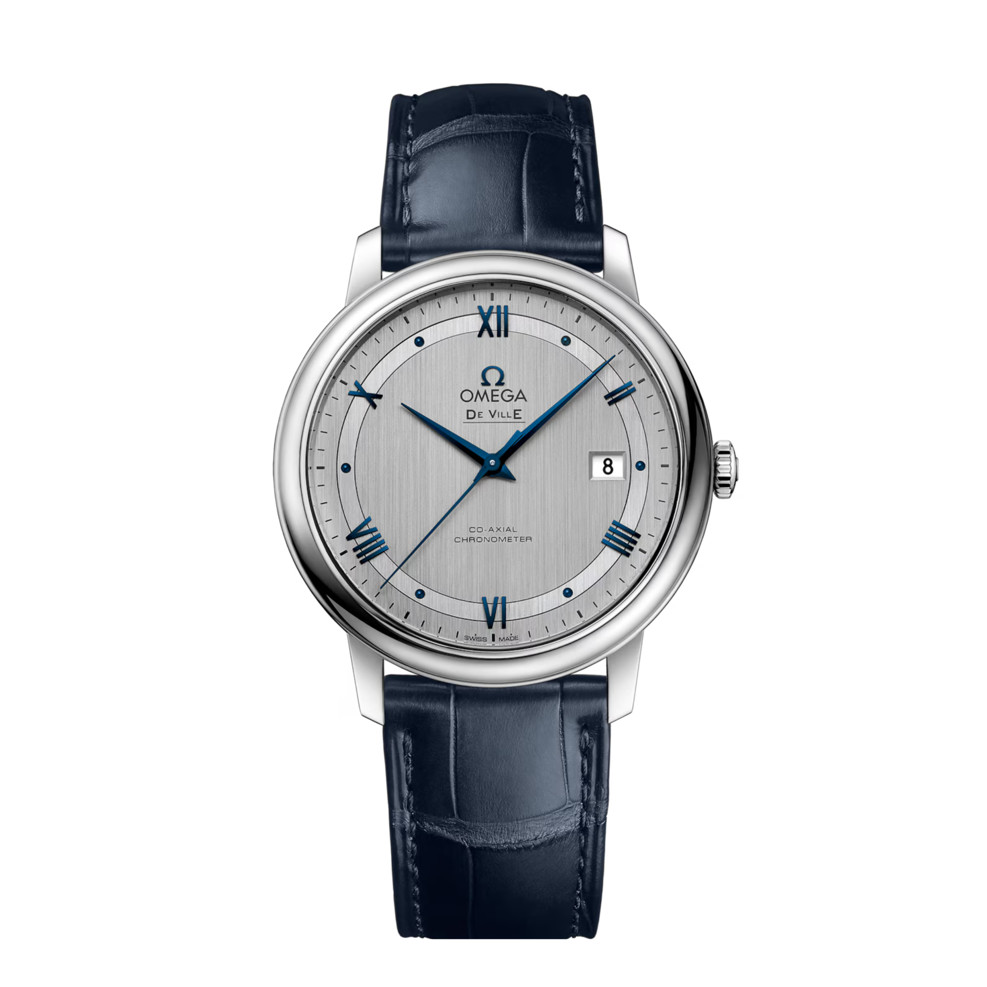 Omega De Ville Prestige Blue Leather Silver Dial Automatic Watch 39.5 mm