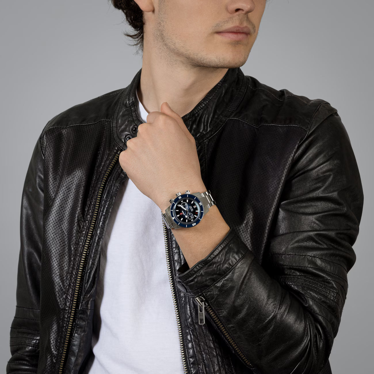 Chronograph, Uni-directional Rotating Countdown (Diver) Bezel, 300m Water-Resistance, Screw-down Crown, Super-LumiNova, Nivachron Antimagnetics, Scratch-resistant, Date |