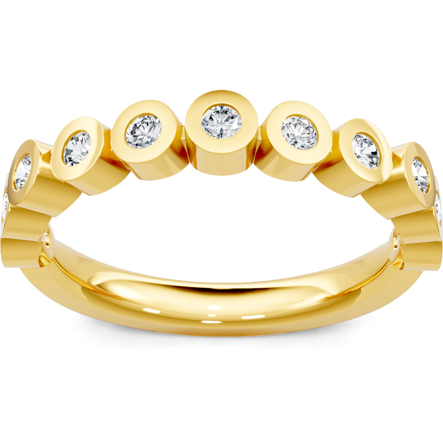 This stunning 14KR Yellow Gold pave milgrain band features 11 round diamonds totaling ¼ carat, meticulously set in a shared prong trellis style that offers delicate texture and radiant sparkle. The milgrain detailing adds vintage charm, framing the continuous shimmer of diamonds symbolizing eternal love. The intricate trellis design evokes the interwoven paths of a lasting relationship, balancing timeless elegance with refined craftsmanship. Comfortable for daily wear, this band is a graceful expression of commitment and beauty, perfect for brides seeking a uniquely sophisticated emblem of their enduring bond.