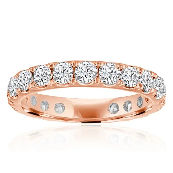 This luxurious 14KR Rose' Gold pave milgrain eternity band showcases 24 round diamonds totaling 1¼ carats, set to maximize dazzling brilliance. The pave setting creates a continuous sparkle that gracefully encircles the finger, while the milgrain edge lends a delicate vintage-inspired finish. With its perfect balance of classic beauty and sophisticated detail, this ring is a radiant expression of love’s unending promise. Whether worn solo or in harmony with your engagement ring, it embodies elegance and timeless luxury, making it a treasured piece that shines as brightly as your forever story.