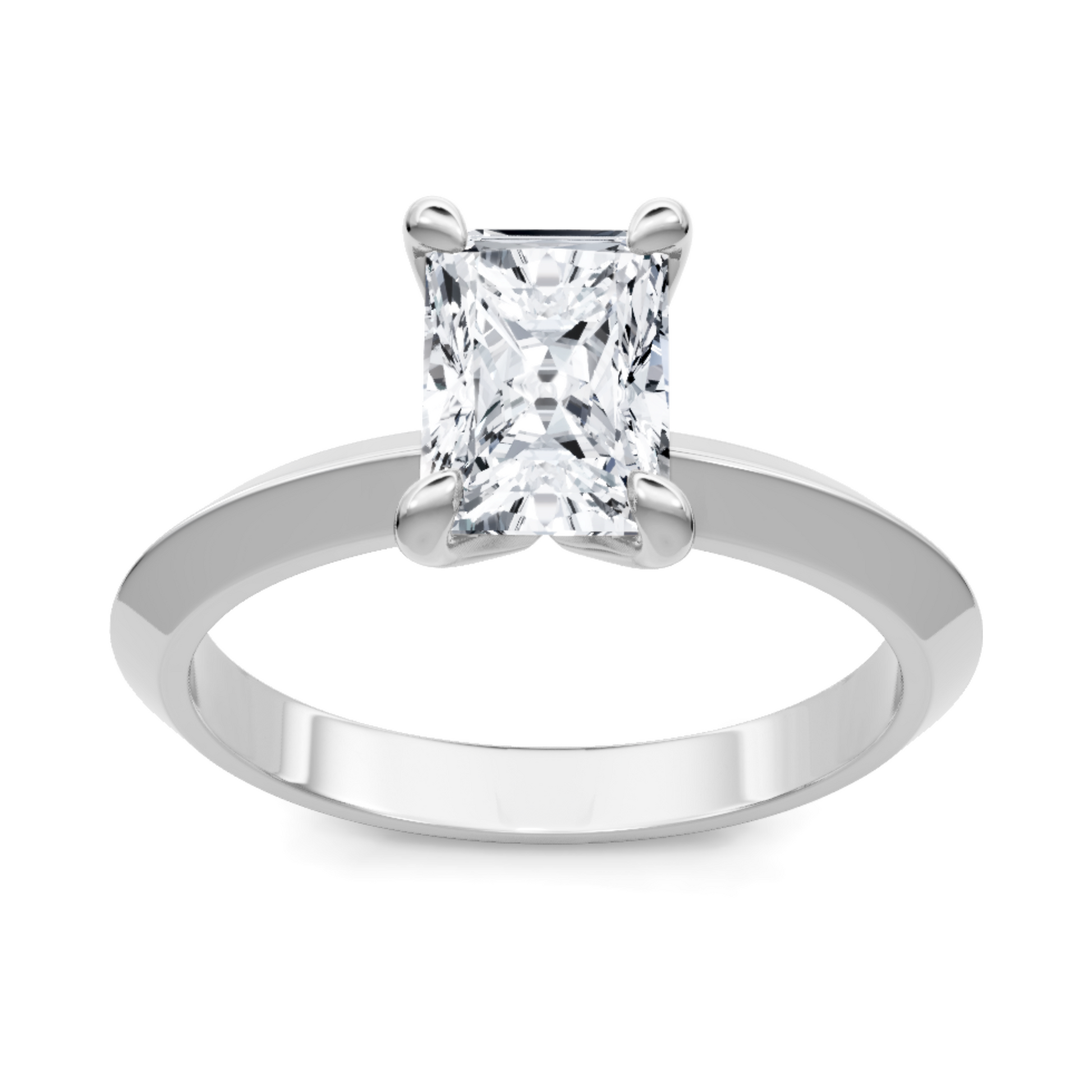 This 14K white gold semi-mount mounting is designed specifically to showcase a 1 Ct emerald cut diamond with clean, sleek lines that emphasize the stone’s clarity and shape. The minimalistic setting provides a timeless and sophisticated look, allowing the emerald cut’s hall-of-mirrors effect to shine. Crafted with sustainability in mind, this mounting offers an ethical and elegant choice for brides seeking a classic engagement ring that highlights the beauty of their center diamond. Imagine Bridal’s expert design ensures a perfect balance of style and craftsmanship. Disclaimer: The center diamond is not included and is sold separately.