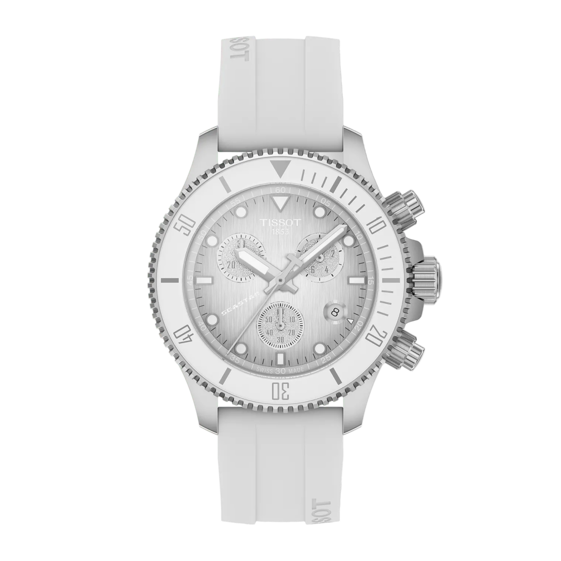 The Tissot Chronograph Quartz Seastar Sapphire Crystal Gray Dial 38mm from Tissot is a distinguished timepiece designed for those who appreciate craftsmanship and style. Born from the Seastar’s heritage, the new 38mm Quartz Chronograph introduces a new expression of the collection’s signature identity — bringing precision to motion and personality to every variation. Its 38mm stainless-steel case is water-resistant up to 30 bar (300m/ 1000ft), offering reliable performance in a format that suits a wide range of wrists. Powered by a Swiss quartz chronograph movement, it features a watersport countdown bezel, screw-down crown and case back, and chronograph sub-dials for precise timing. Luminescent hands and markers ensure legibility in low-light conditions. Available in a range of configurations, the collection brings a wide variety of finishes and strap options to suit different moods and styles. Length 38,00 Width 38,00 Thickness 12,95 Lugs 18.00. Water-resistant up to a pressure of 30 bar (300 m / 1000 ft). Reference Shape - Round. Identified by SKU TISSOT: T1202171701100.