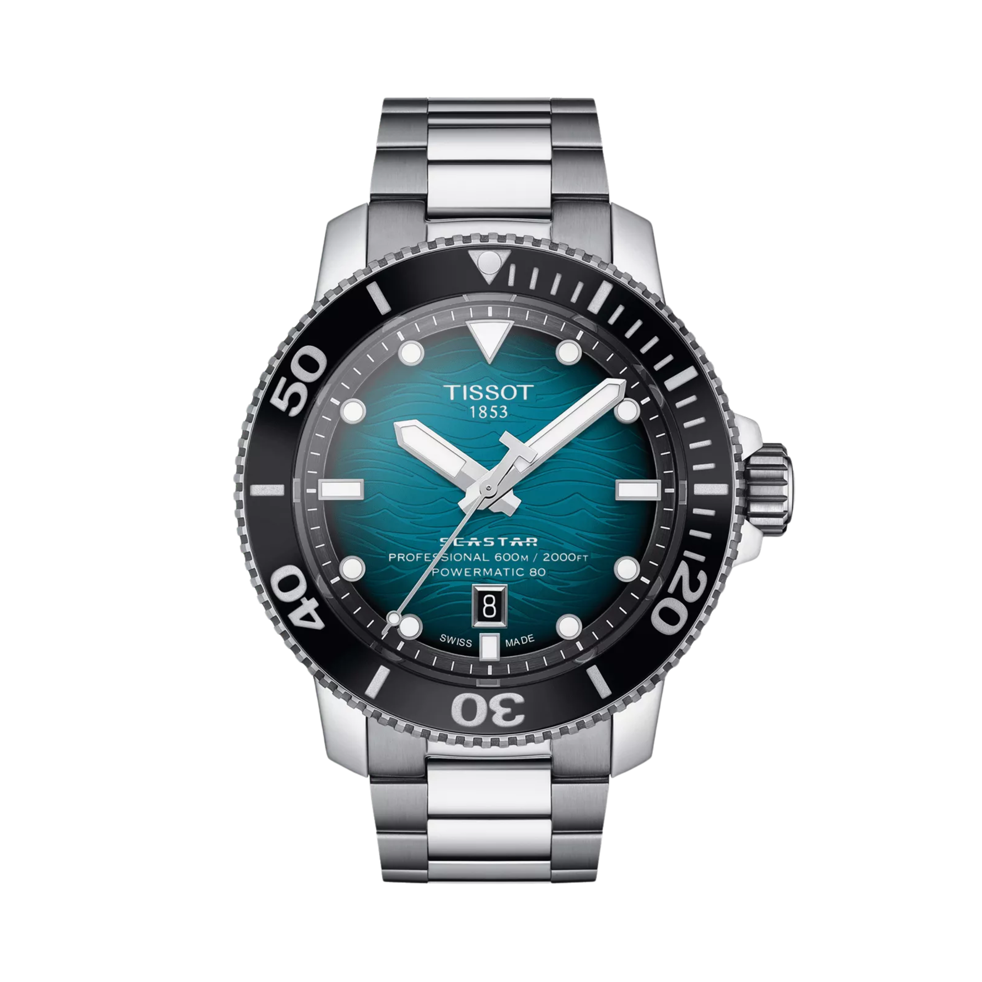 The Tissot Seastar 2000 Professional Powermatic 80 46 mm Gradient Blue Dial Stainless Steel Automatic Watch is built for those who demand peak performance under the sea. Its striking gradient blue dial evokes the depths of the ocean, while bold luminous markers and hands ensure perfect readability even in low-light conditions. The robust stainless steel case and unidirectional bezel provide durability and precision, making it a true diver's companion. At its core, the Powermatic 80 automatic movement delivers Swiss precision and an impressive 80-hour power reserve, ensuring the watch is always ready when adventure calls. Water-resistant up to 600 meters, this timepiece is designed to withstand extreme underwater conditions, while the scratch-resistant sapphire crystal keeps it pristine. The Seastar 2000 Professional is a high-pressure masterpiece that combines cutting-edge dive technology with refined style for both the ocean and everyday life. Identified by SKU: T1206071104100.